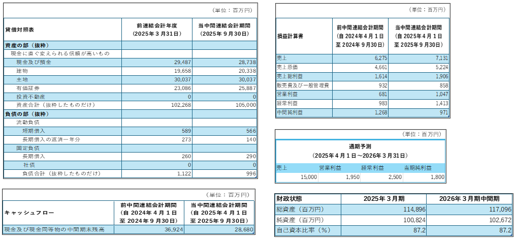 負債も過度ではなく、全体としてバランスの取れた財務状態にある。不動産事業を主軸とする企業としては、安定した資金繰りが維持されているといえる。